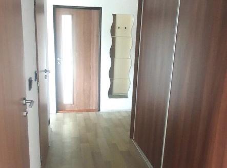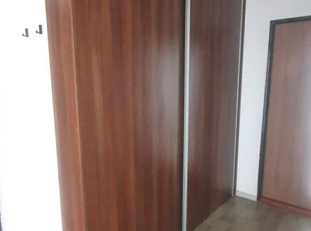 U vstupu vestavěná šatní skříň zhotovená na míru s odkládáním.