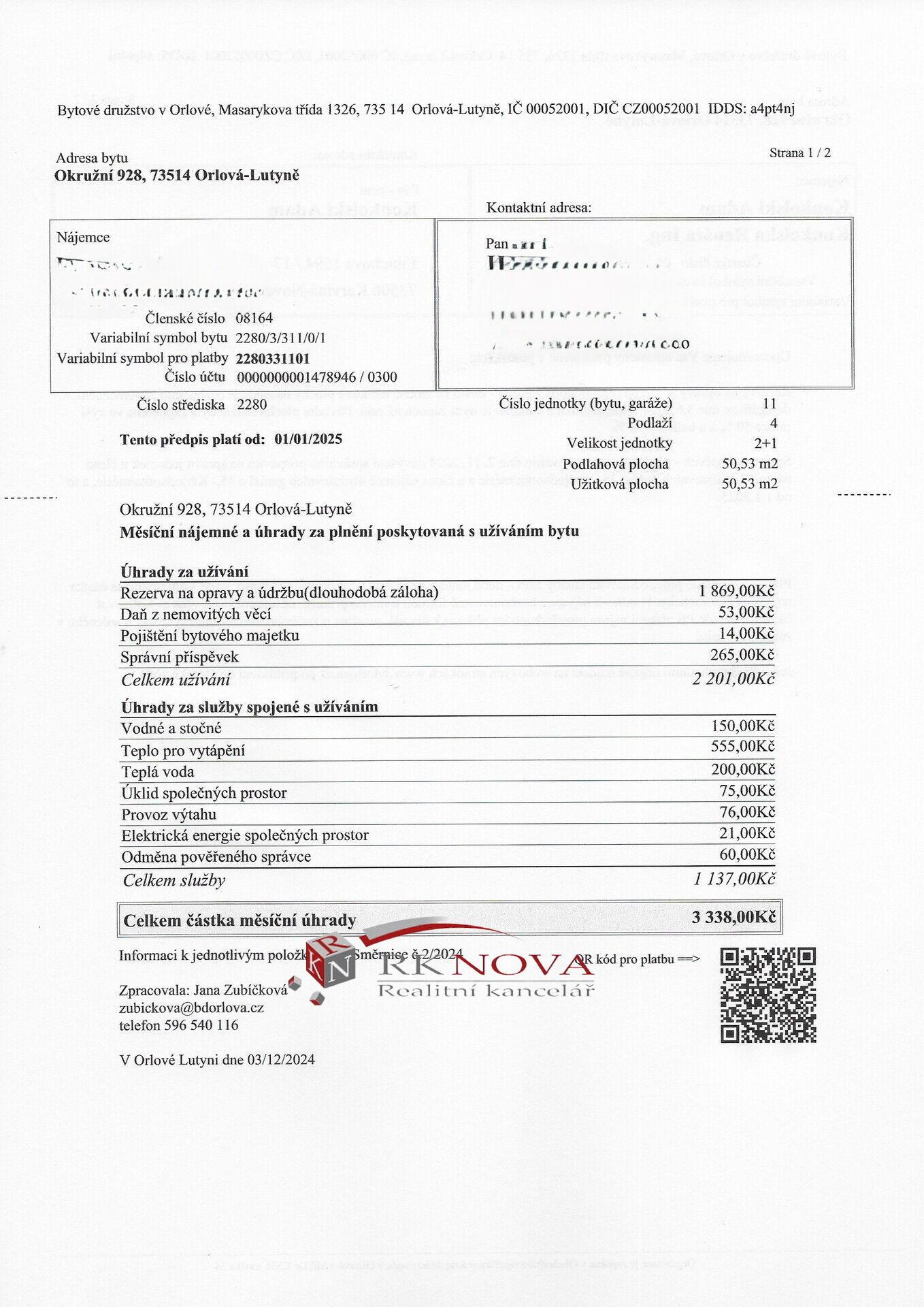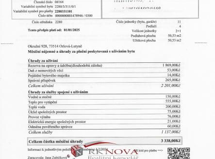 Velkou výhodou bytu je poloha bytu v dosahu centra Orlové, nízká pořizovací cena a v neposlední řadě nízké náklady na bydlení ve výši 3.778,-Kč.