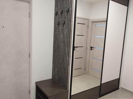 U vstupu vestavěná šatní skříň zhotovená na míru s odkládáním.