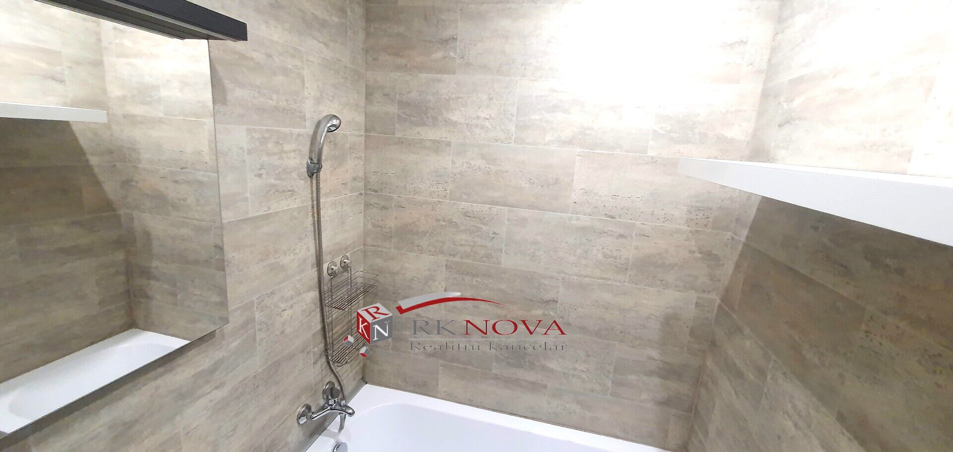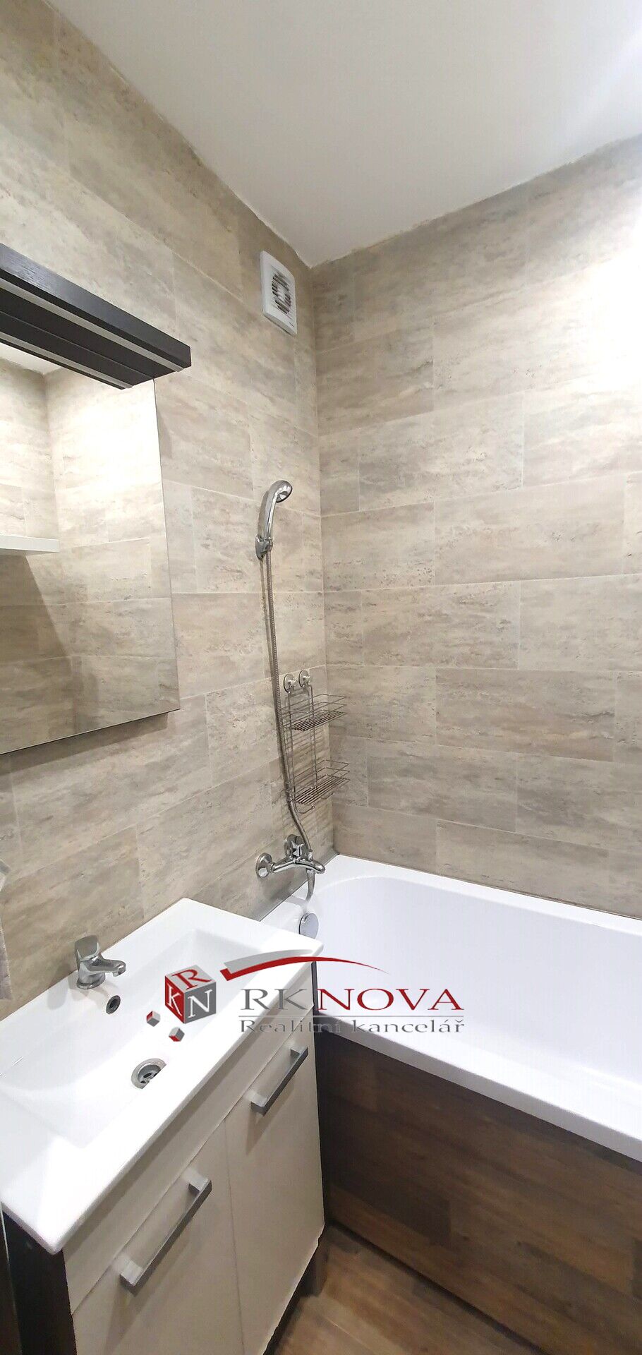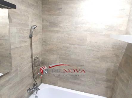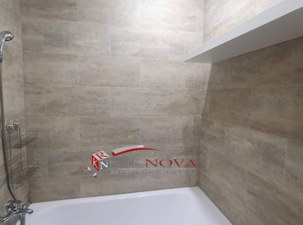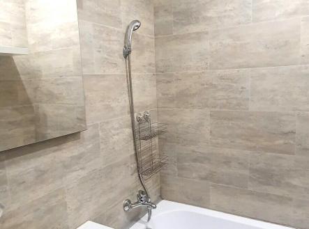 Koupelna po rekonstrukci včetně nové plastové vany, nové umyvadlo s baterií .