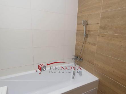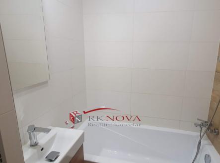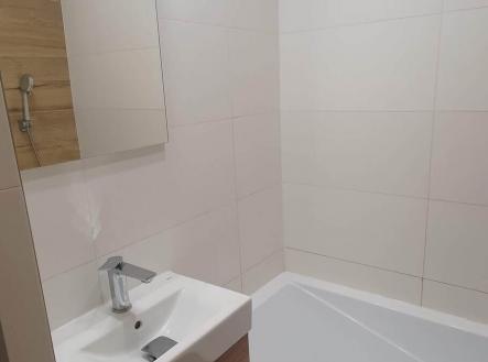 Koupelna po celkové rekonstrukci včetně nové plastové vany, nové umyvadlo s baterií .