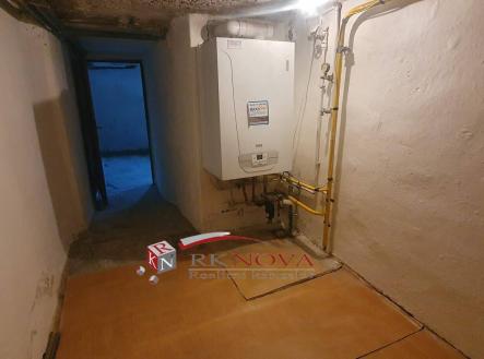 Topení je ústřední, ohřev vody plynovým kotlem.